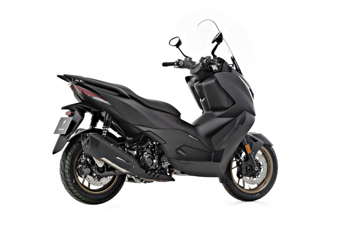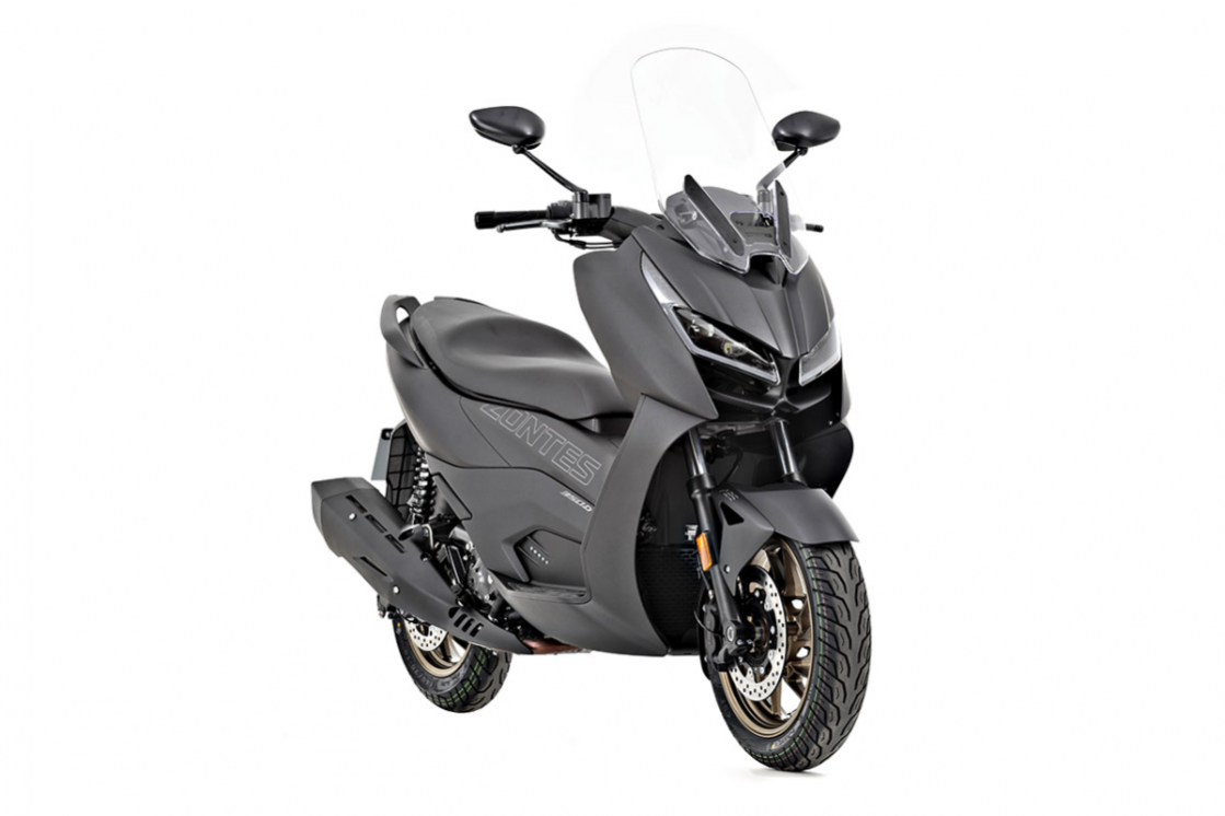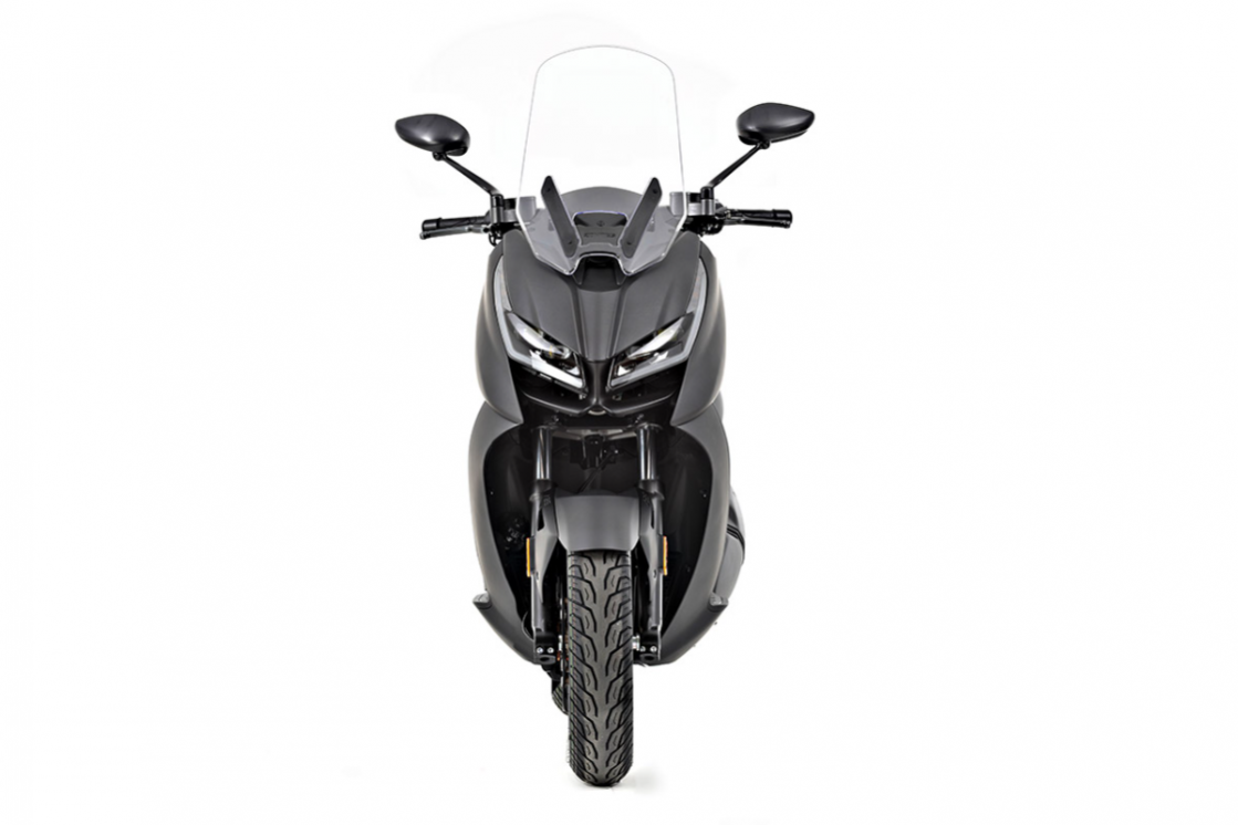 A nova 350 D adota nossa potência de 349 cc. Externamente, apresenta uma nova carroceria com especial atenção ao design do farol com tecnologia 100% LED, que desenvolvemos em conjunto com o especialista alemão Osram. Os seus utilizadores poderão desfrutar de um grande potencial luminoso, já que este novo farol incorpora 4 focos polielipsoidais de grande amplitude e alcance. Outra novidade é a forquilha telescópica de 41 mm de espessura e espigão duplo como nas motocicletas, para aumentar a rigidez e a segurança em freadas bruscas. Entre seus equipamentos bastante completos, destacam-se controle de tração, 2 para-brisas, um touring e um desportivo, ambos de série, e com ajuste elétrico de altura, tomada USB dupla QC3.0 de carregamento rápido, instrumentação com tela TFT HD full color com “Função Screen Mirroring”, freio de estacionamento, função de alarme antirroubo com sensor de movimento liga/desliga, etc. Os 36,71 CV e 38 Nm de torque deste novo mecanismo, grande recorde absoluto na categoria 350 e 400cc, fazem das nossas novas scooters 349cc a melhor opção polivalente para uso estável e seguro em rodovias, possuindo também grande agilidade para deslocamentos urbanos com trânsito intenso.